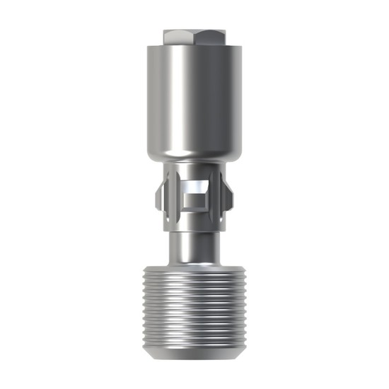 Análogo digital em titânio para conexão hexágono externo (HE), correspondente a implantes de diâmetro 4,1 mm. Projetado para precisão dimensional em fluxos laboratoriais e digitais, com rosca M2x0,4 e parâmetros definidos para encaixe estável e reprodutível.