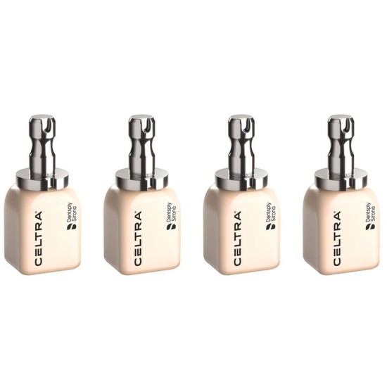 CELTRA é um silicato de lítio reforçado com óxido de zircônio (ZLS) que é fornecido em estado sólido e pode ser utilizado diretamente após fresagem e polimento. As restaurações desgastadas têm uma resistência à flexão de 210 MPa. Existe também a possibilidade de aumentar a resistência à flexão para 370 MPa com uma queima dos pigmentos de caracterização e glaze.