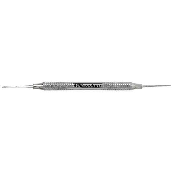 O Cinzel Wedelstaedt 3-4 da linha Millennium é um instrumento para periodontistas que buscam precisão e eficiência no refinamento de preparos cavitários. Fabricado em aço inoxidável, possui cabo oco de 8 mm, que proporciona leveza, ergonomia e melhor controle para o profissional durante práticas odontológicas.