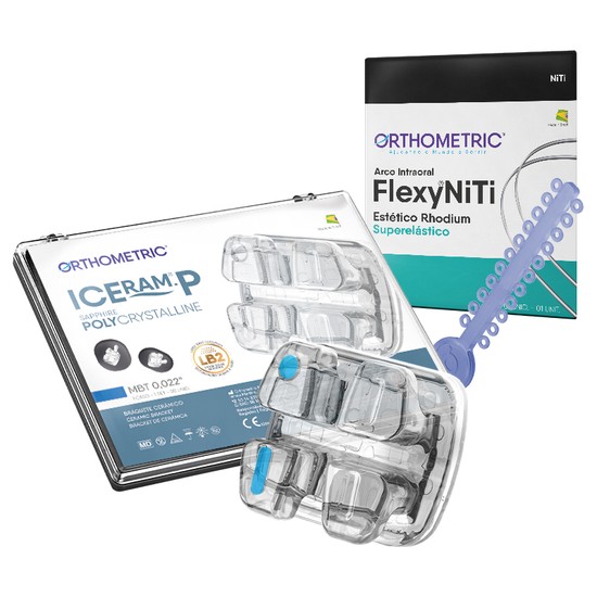 Kit Bráquete Cerâmico Iceram-P 0,022 com Arcos e Elásticos – Orthometric