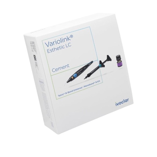Kit com 1 tetric n-bond universal 6g, 1 variolink esthetic lc 2g (neutral), 1 variolink esthetic try 1,7g (neutral), 1 monobond n refill 5g, liquid strip refill 2,5g e 100 vivapen refil.