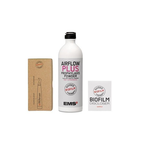 O Kit de Introdução Airflow Max Swiss Original é ideal para profissionais que buscam excelência na remoção de biofilme, manchas e cálculo inicial. Este kit contém uma peça de mão Airflow® Max Swiss Original, uma garrafa de pó Airflow® Plus de 400g e uma amostra do Biofilm Discloser.