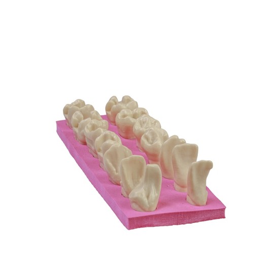 Conjunto didático de macrodentes plásticos com preparos cavitários em diferentes classes, ideal para prática de escultura dental e treinamento pré-clínico com foco em precisão anatômica e padronização dos exercícios.