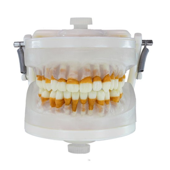 A estrutura é composta por um articulador com o refil de arcada dentária e diferentes tipos de dentes, formando a base necessária para a montagem de múltiplas simulações de tratamentos odontológicos. A versatilidade do sistema permite a troca dos diversos refis de arcadas e dentes, possibilitando a reprodução de diferentes cenários clínicos conforme a necessidade de cada disciplina.