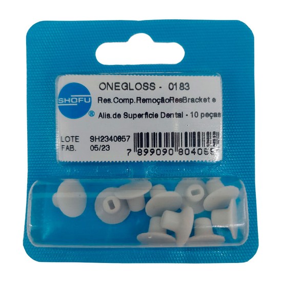 OneGloss é um abrasivo de silicone sintético impregnado com óxido de alumínio para acabamento e polimento de todos as restaurações de compósitos. Pela simples alteração de pressão de contato, passa-se da etapa de acabamento para a de polimento. Com um polidor pode-se dar polimento em uma arcada. Indicado também para remoção do excesso de cimento resinoso na superfície dental sem marcar o esmalte, para a remoção do cimento após a retirada do aparelho ortodôntico, para remoção de manchas e para polimento do esmalte dental após a raspagem. As reposições das taças, midi-pontas e discos são fornecidas em embalagens com 10 unidades.