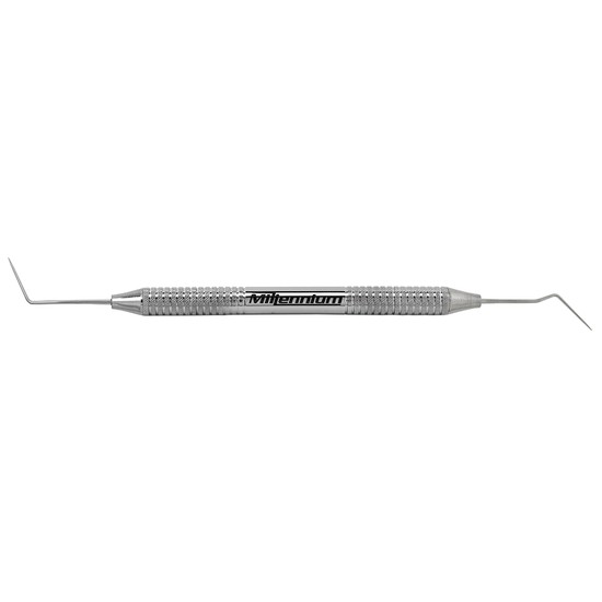 Sonda exploradora endodôntica com pontas delicadas e anguladas, projetada para detecção precisa de cáries, fissuras, trincas e falhas estruturais, além de facilitar o mapeamento da câmara pulpar e a localização de embocaduras de canais, inclusive em entradas estreitas ou calcificadas. Oferece alta sensibilidade tátil, empunhadura ergonômica e acabamento polido para desempenho clínico superior.